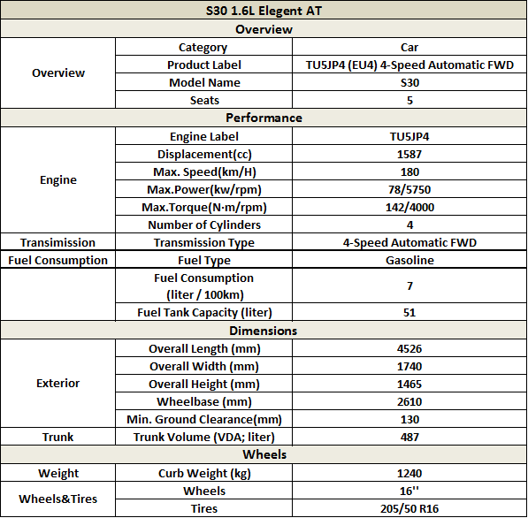To meet all your demands, the S30 brims with driving and control technologies including the A15 VVT engine with new-generation 4AT transmission, intelligent interaction system with 7’’ LCD screen, reversing camera, reversing distance display, GPS navigation, remote control key-locating function and EPS (A15) system.